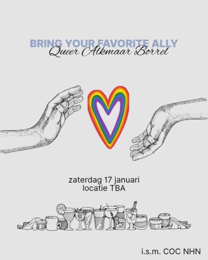 17 January 2026 19.30 uur Locatie TBA (To Be Announced) Alkmaar Queer Alkmaar borrel - 17 januari Alkmaar Borrel Ontmoeting Queer Alkmaar Zaterdag